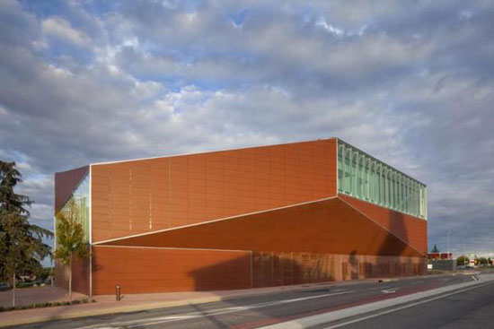 The building is covered with a layer of ceramic tiles to pay tribute to the brick buildings in montobang. Only a few side of the window that have read a desk to break this special pottery facades. The outdoor space treated with colored concrete evokes memories of the cobblestone sidewalks of the old town.