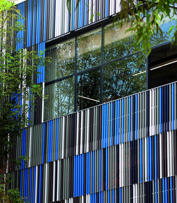 The scheme shows us the application of tao baiye on the exterior wall of the building or any other type of glass curtain wall. The ceramic products can be installed vertically and horizontally. The ceramic curtain wall system includes aluminum alloy. One of its remarkable features is the ability to see the perfect, consistent look from the outside and from the inside.