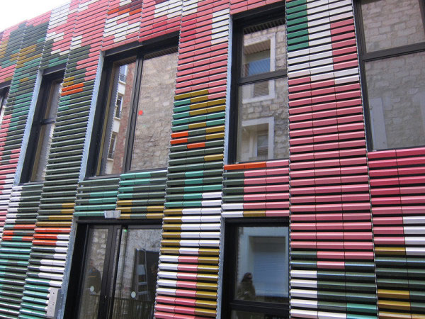 The outer facade of the project USES colorful glazed pottery leaves, which, apart from sun shading, also serves as an excellent decorative effect. Breaking up conventional installation also makes buildings different.