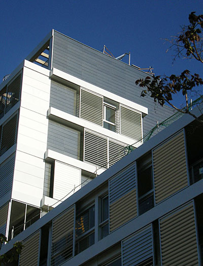The facade USES a metallic silver ceramic plate, which changes when the sun shines. On the other hand, it also provides excellent insulation and sound insulation.