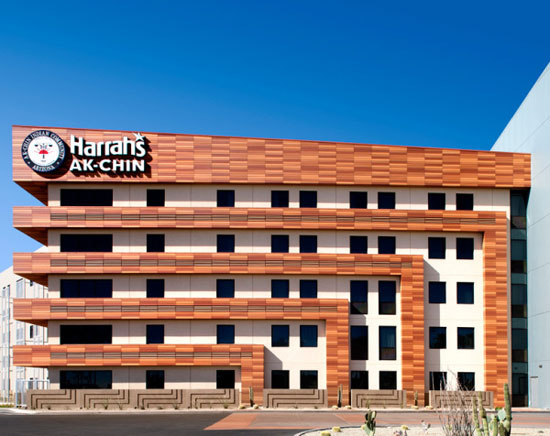 Harrahs Ak-Chin casino hotel,located in maricopa Arizona, designed by RSP architectural firm, facade USES a variety of colors of tao weaving effect, at the same time, the ceramic plate and the ceramic shutter the collocation of the novel, let this small building facade looks lively.