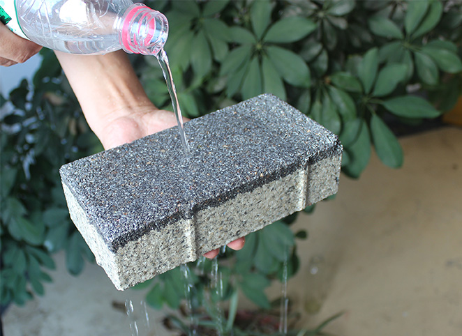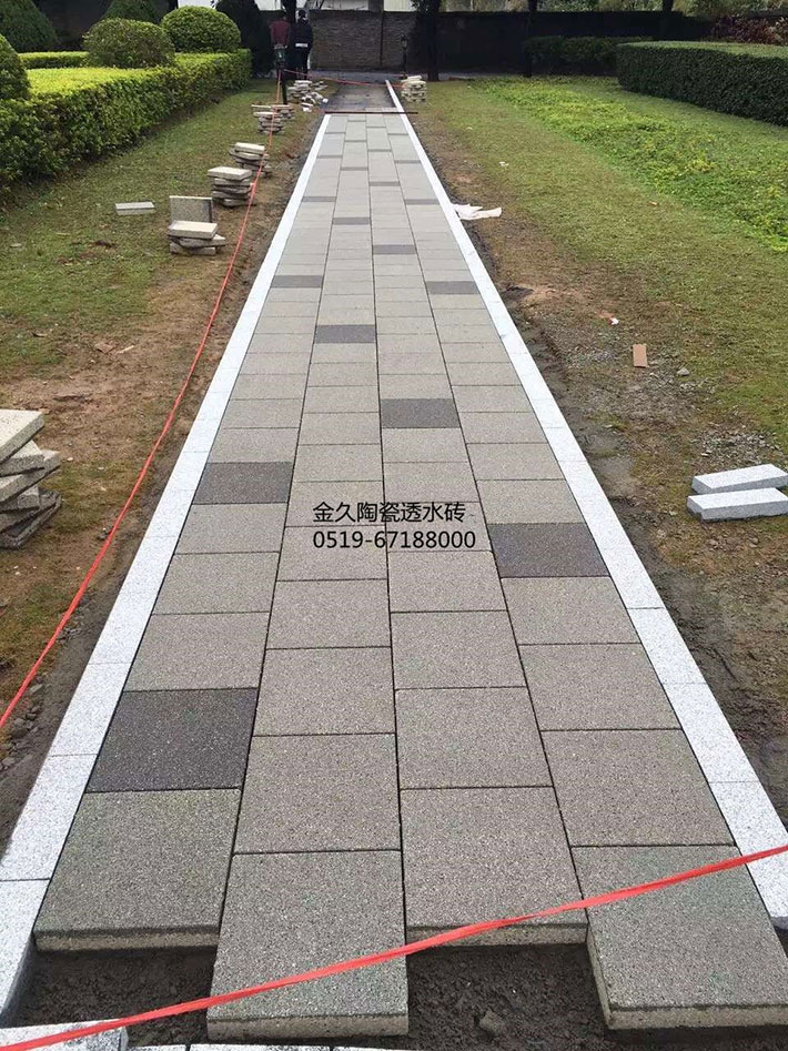 金久陶瓷透水砖经高压及1200度高温烧结而成,其强度明显高于其他透水铺装材料,其抗压强度达50Mpa以上。