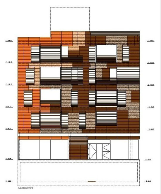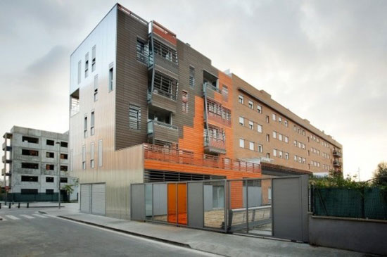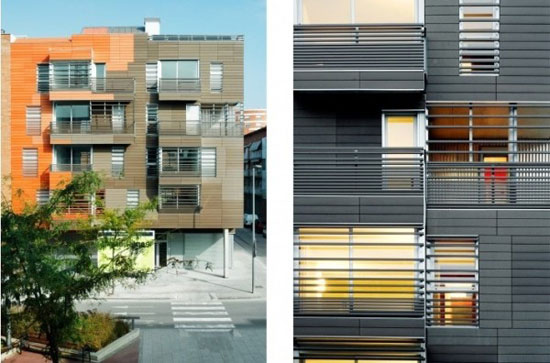 西班牙格拉诺勒斯的住宅项目,于2004年完工。外立面和窗台部分使用了多种颜色的陶板及陶百叶产品,既满足了建筑遮阳的功能,又美化了建筑墙面。