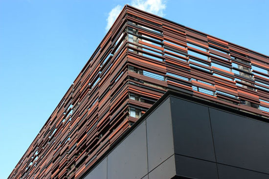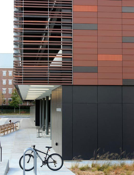 University Bookstore(大学书店) / Parking Garage(停车场),位于美国阿肯色州,外立面使用了大量的陶百叶及陶板 。